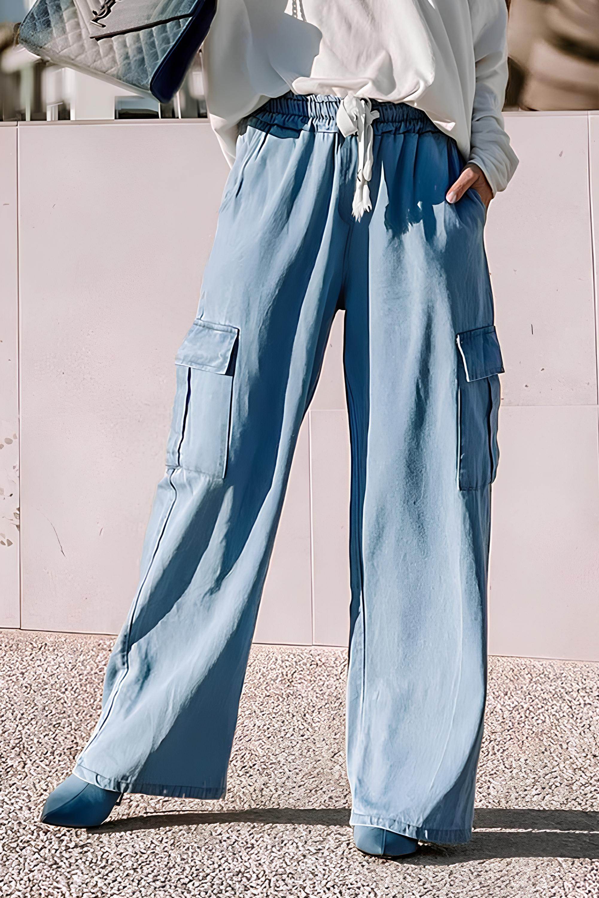 Drawstring Cargo Pocket Wide Leg Jeans - Delanoir